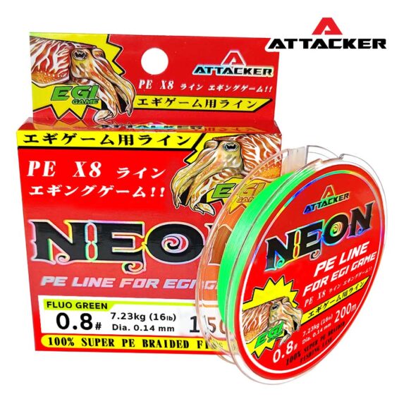 สายตกหมึก สายพีอี ถัก 8 ATTACKER NEON สีเขียว ขนาด PE 0.8 / 16lbs 150M