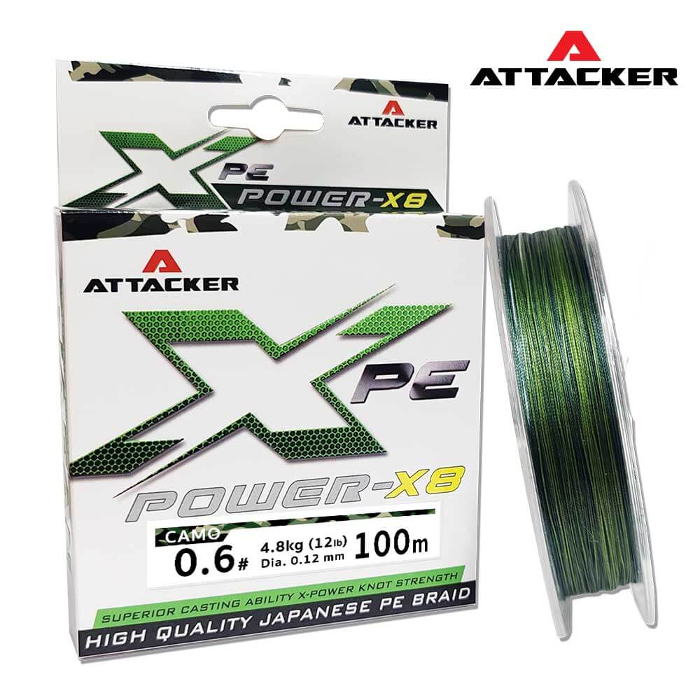 สายตกปลา สายพีอี ถัก 8 ATTACKER Super Braided Line X8-Braided ขนาด 12lbs 100M