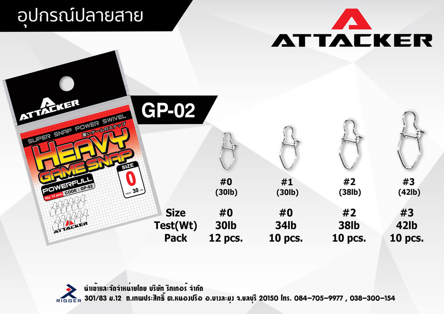 กิ๊ฟทรงพิน Attacker HEAVY GAME SNAP รุ่น GP-02 เป็นกิ๊ฟทรงพินรูปแบบใหม่ ที่มีความทนแรงดึงสูง ที่สามารถใช้งานได้อย่างครอบคลุม มีให้เลือกใช้กันตามขนาด ตามความต้องการในแต่ละงาน