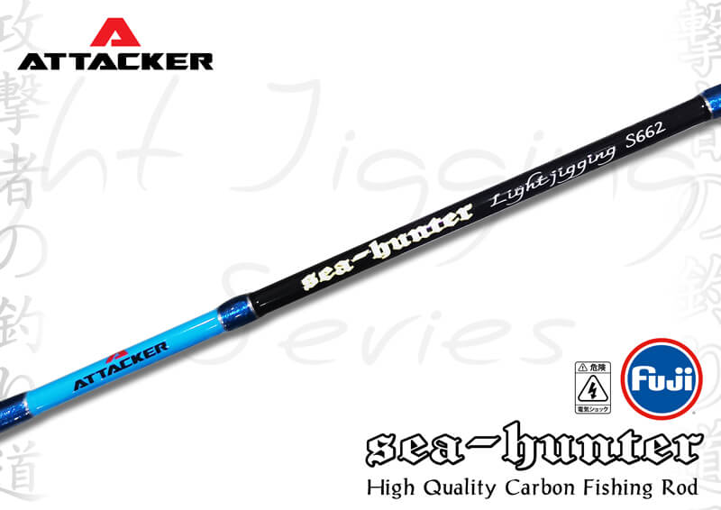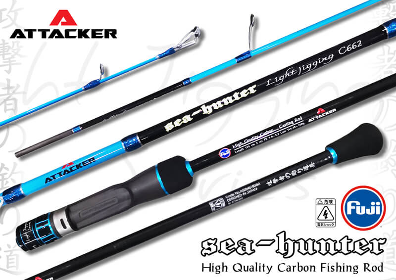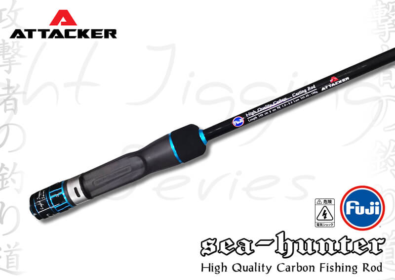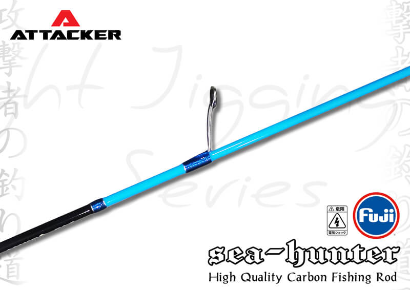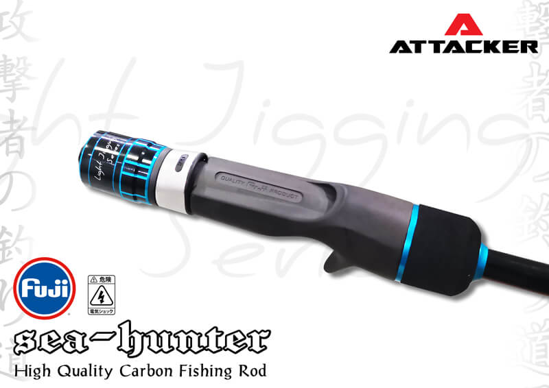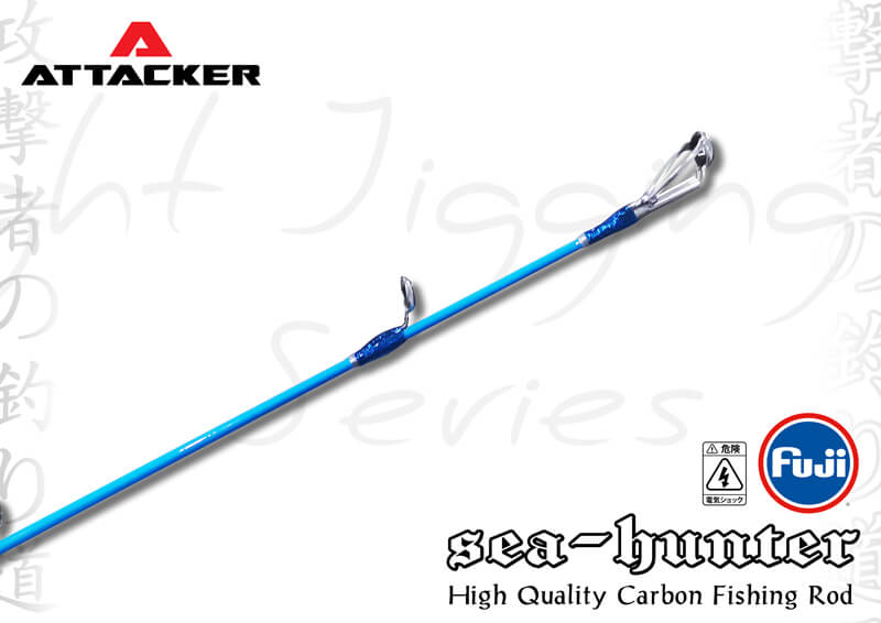 คันเบ็ดตกปลา คันจิ๊กกิ้ง คัน Jiging ATTACKER รุ่น SEA-HUNTER ตัวท่อนโคนมีความยาวเหมาะสำหรับการจิ๊กกิ้ง น้ำหนักเบา ตัวแบลงค์คันแข็งแรงแต่ปลายอ่อนเหนียว สามารถใช้ตกได้ตั้งแต่ งานจิ๊กกิ้ง ตลอดจนไปถึงการตกปลาแบบ Slow-jig ก็ได้ ตัวคันสีฟ้าตัดกับสีดำทำให้ดูโดดเด่นยิ่งขึ้น มาพร้อมกับ Reelseat FUJI จับกระชับถนัดมือยิ่งขึ้น อีกทั้งยังความยาวส่วน Puddle ด้านท้ายให้ความคล่องตัวและใช้งานได้หลากหลายขึ้น เป็นคันเบ็ดตกปลาที่ตกแบบจิ๊กกิ้งต้องมี!!