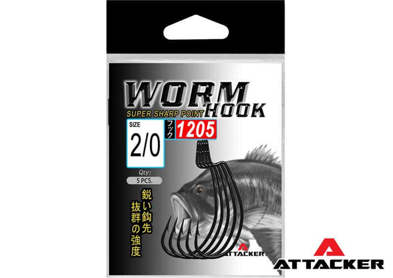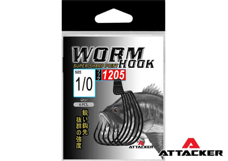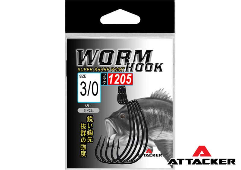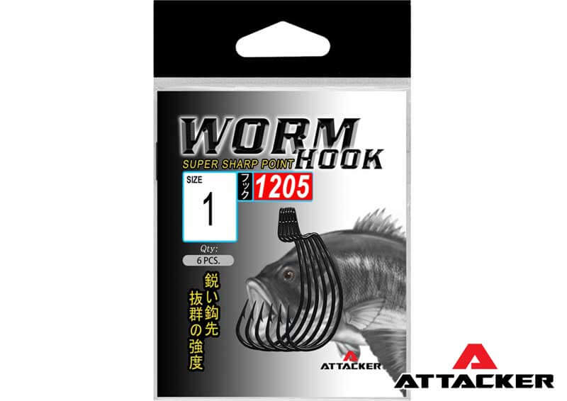 ตัวเบ็ดเกี่ยวหนอน เบ็ดเกี่ยวหนอนยาง Attacker Worm Hook 1205 These hooks are designed for fishing heavy cover and submerged structure. The hook tip is well hidden inside the plastic lure to avoid hooking everything it comes into contact with! Suitable for more slender shaped soft bait.