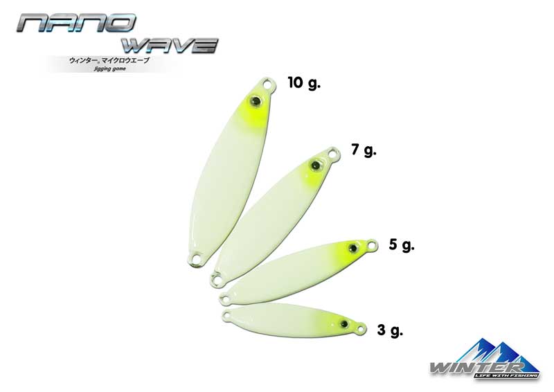 เหยื่อปลอม เหยื่อจิ๊กกิ้ง NANO WAVE เหยื่อจิ๊กที่มาพร้อมกับรูปทรงปลาซึ่งพริ้วไหวได้ดีในน้ำช่วยทำให้การจิ๊กกิ้งเป็นเรื่องง่าย และเพิ่มความเป็นประกายในการสร้างแอ็คชั่นในการล่อให้ปลากินเหยื่อเพิ่มขึ้นยังมีการเรืองแสงอีกด้วย(สีเขียว)