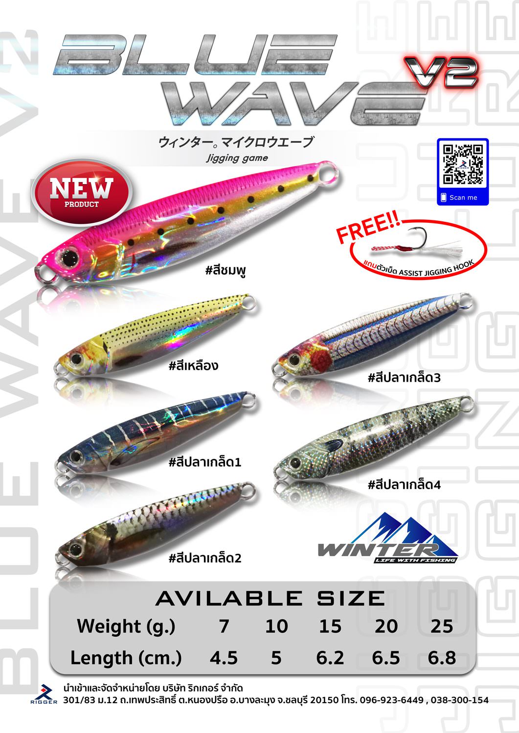 เหยื่อปลอม เหยื่อจิ๊กกิ้ง WINTER Blue wave V2 metal Jigging Fishing Bait Lure