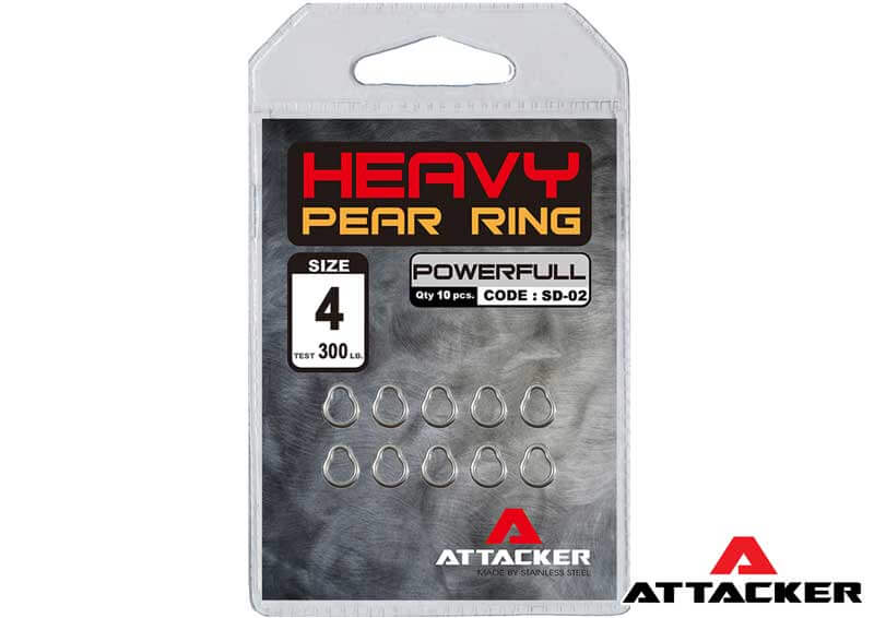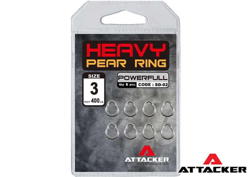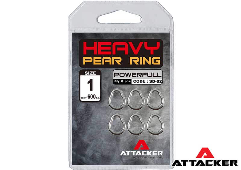 โซลิดริง ATTACKER HEAVY PEAR RING SD-02 คือห่วงที่ไร้รอยต่อ สายกับตะขอผูกที่ห่วง solid ring จะมีความแข็งแรงมากกว่า Split ring เพื่อรับแรงดึงจากปลาแทนเหยื่อ จึงมั่นใจได้ว่า Attacker HEAVY PEAR RING SD-02 ตอบรับกับแรงดึงของปลาขนาดใหญ่ได้