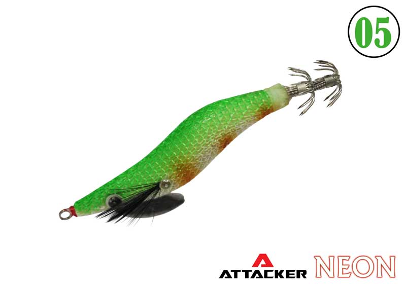 โยกุ้งเรืองแสง เหยื่อปลอมตกหมึก ATTACKER “NEON SQUID JIG “ ขนาด 1.8และ 2.0