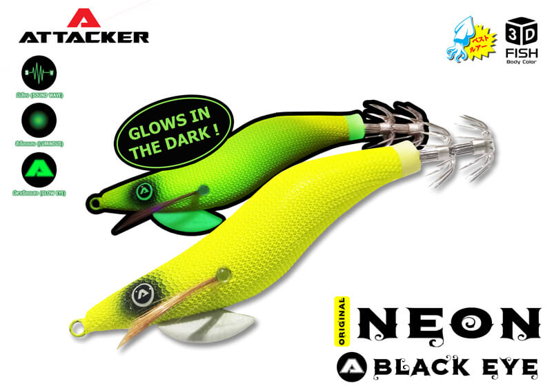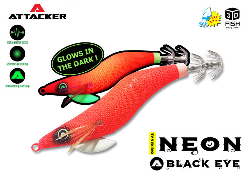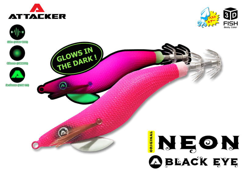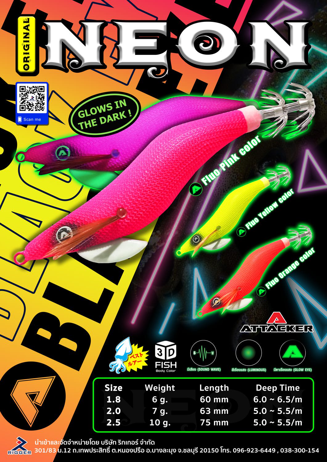 โยกุ้งตกหมึก ATTACKER NEON BLACK EYE SQUID JIG มีทั้งหมด 3 สี 3 ขนาด คือ 1.8 , 2.0 และ 2.5 เรืองแสง-เสียงดังสะท้อนแสงสีเจ็บทุกตัว ออกตกหมึกเมื่อไร มีติดไว้ไม่ผิดหวัง ราคาหลักร้อยแต่คุณภาพเกินราคาต้อง “นีออน”